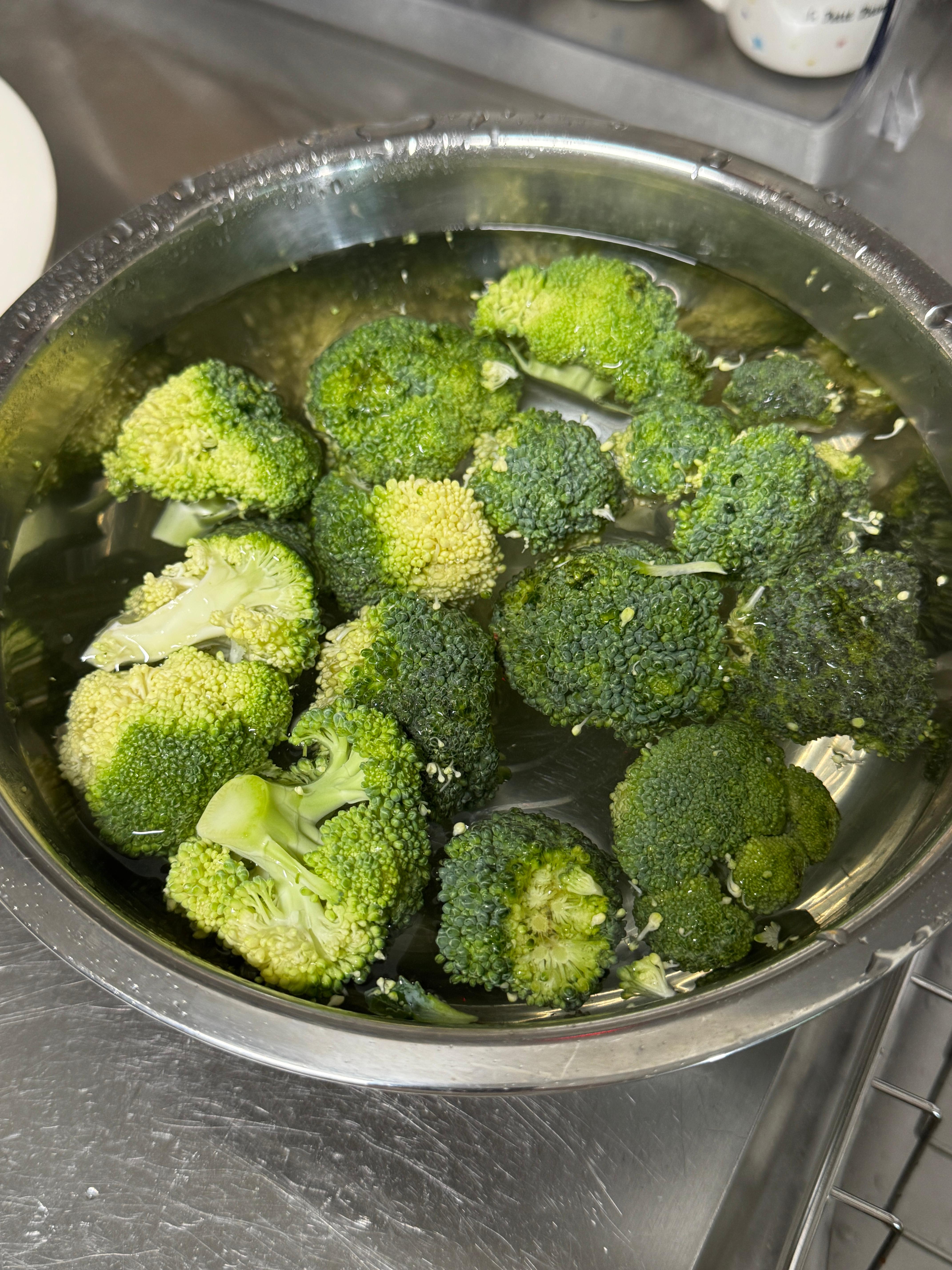 - 물 위에 떠오르는 이물질은 건져내고, 브로콜리는 그대로 담가 두세요.