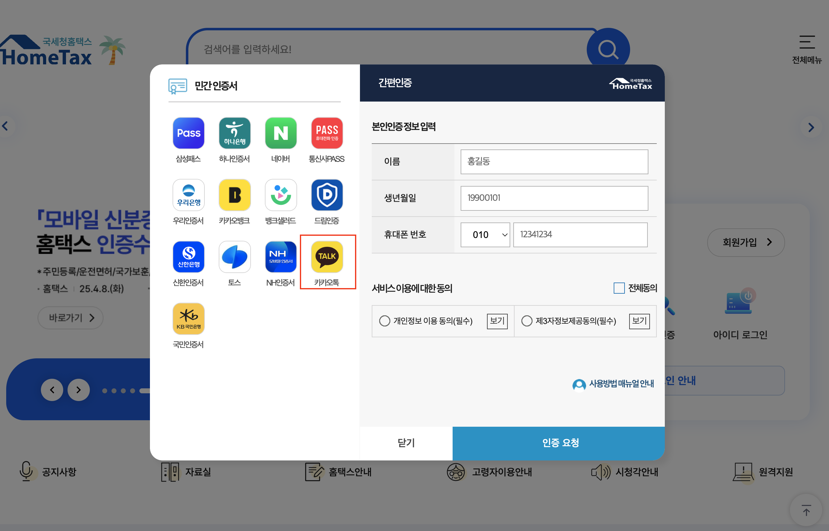 - 공동인증서 또는 간편 인증 로그인
