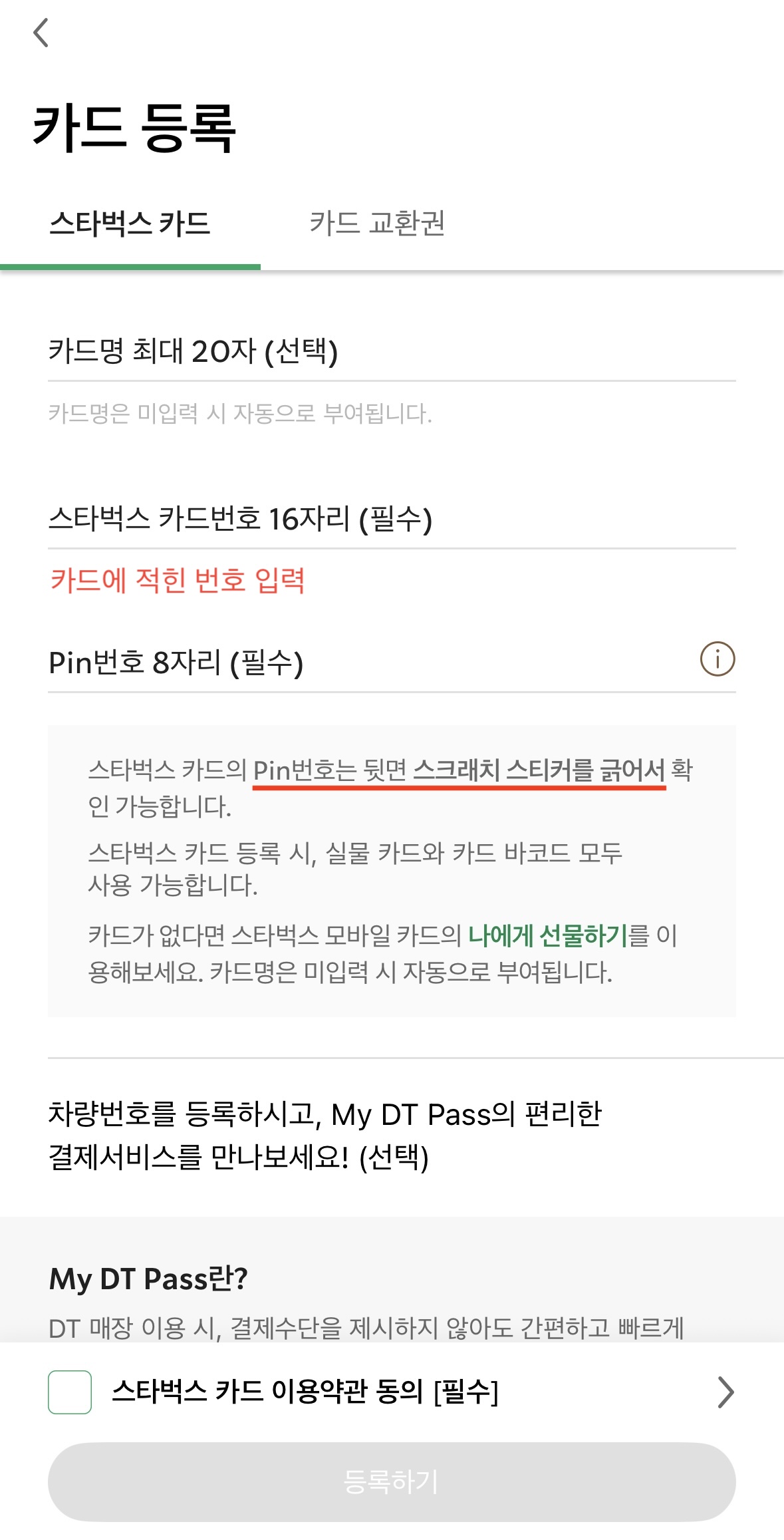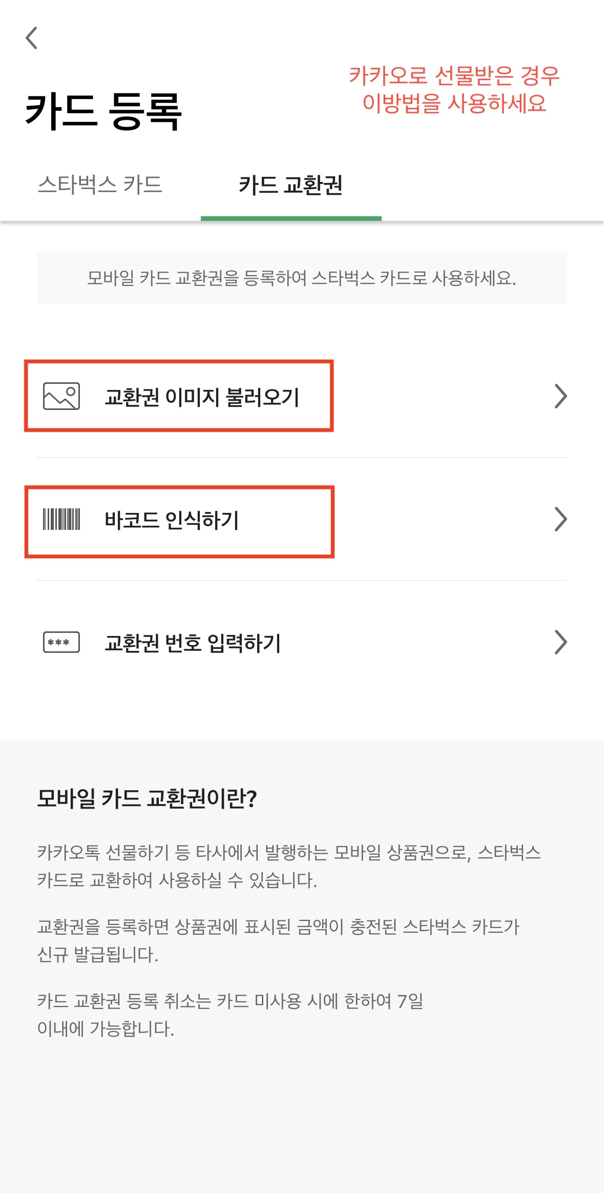 10.스타벅스 카드 등록 시 주의사항