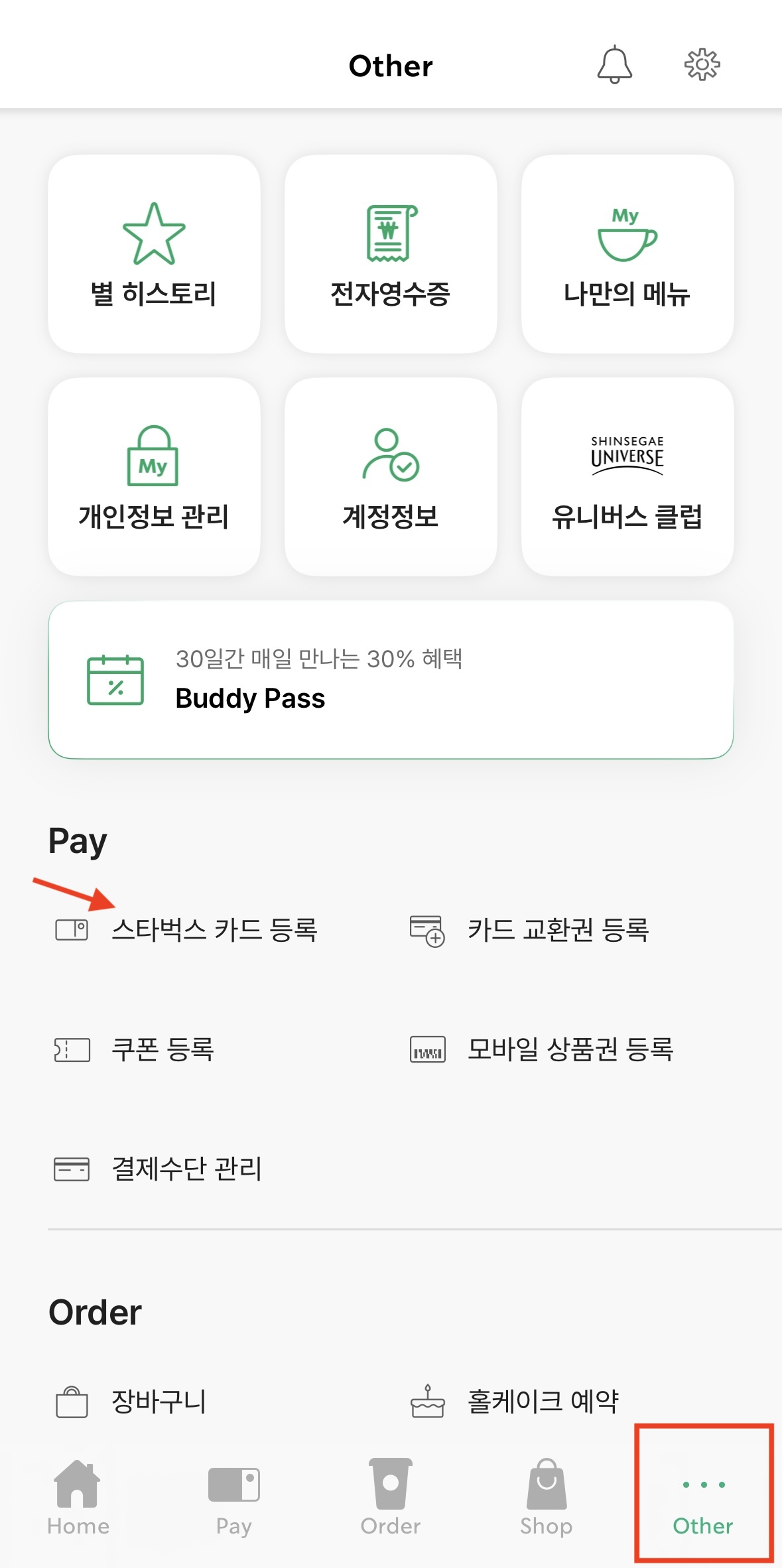 3.스타벅스 카드 등록 방법