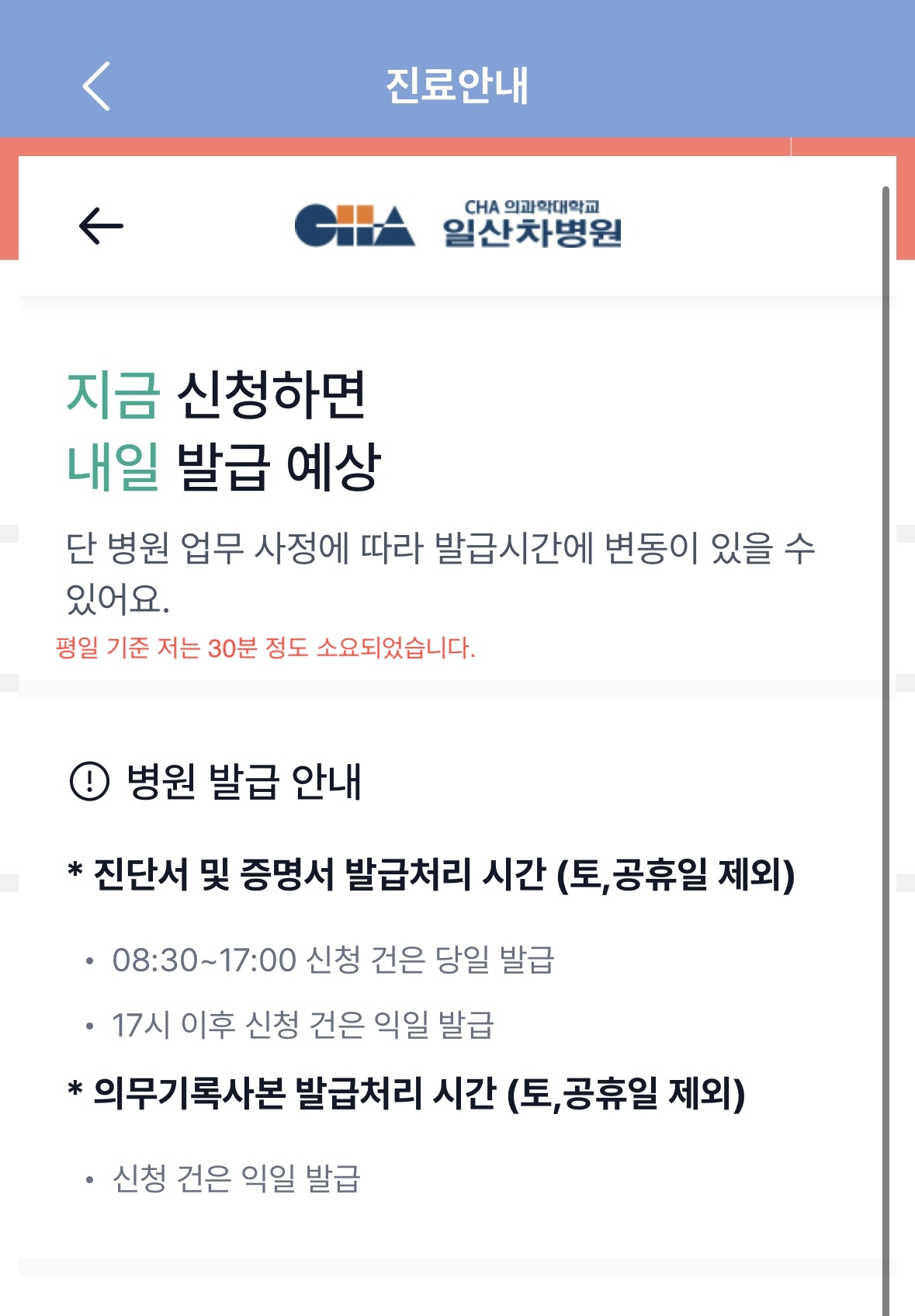 - 24시간 발급 가능 (일부 병원)