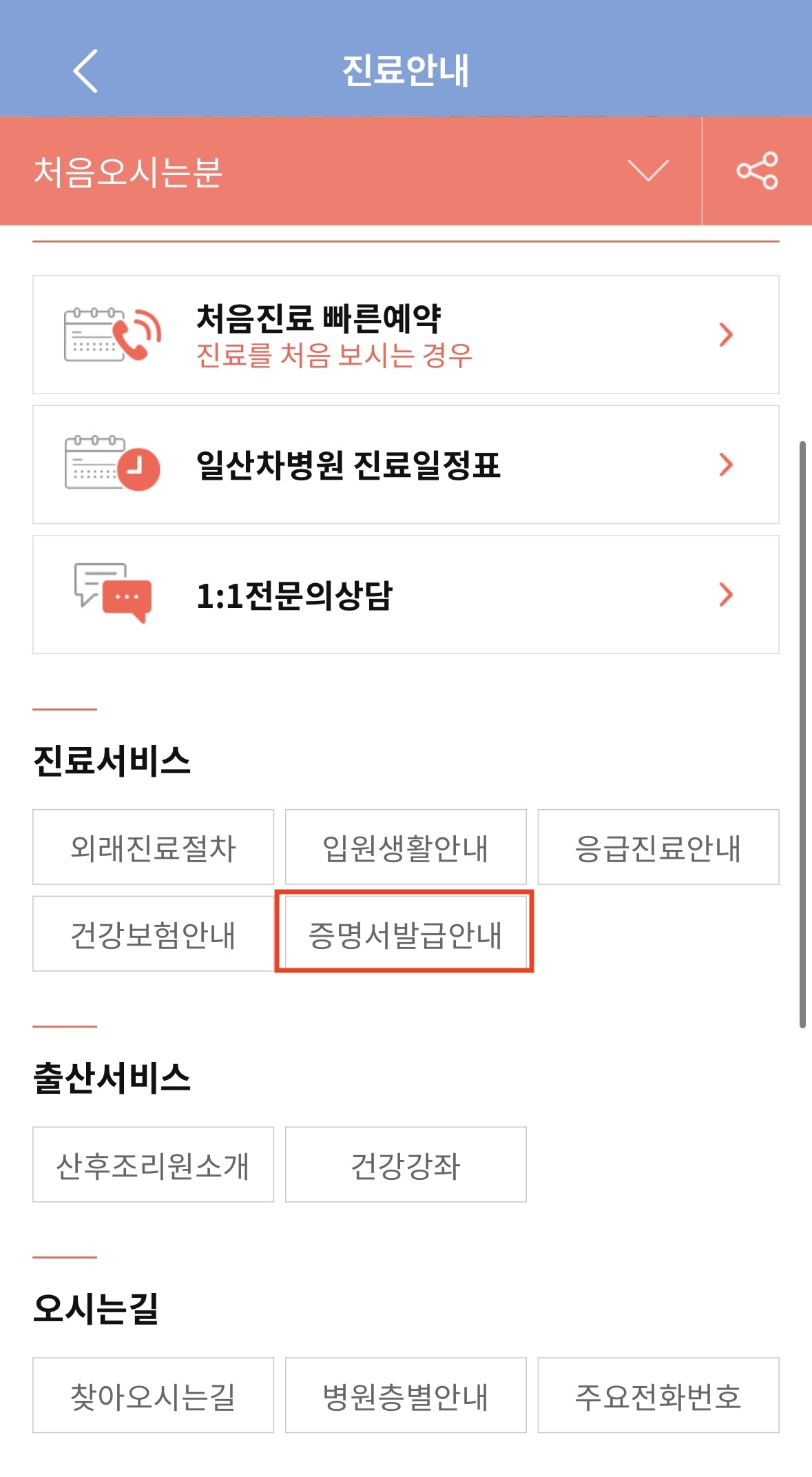 4.온라인 발급 절차 (예시_일산 차병원)