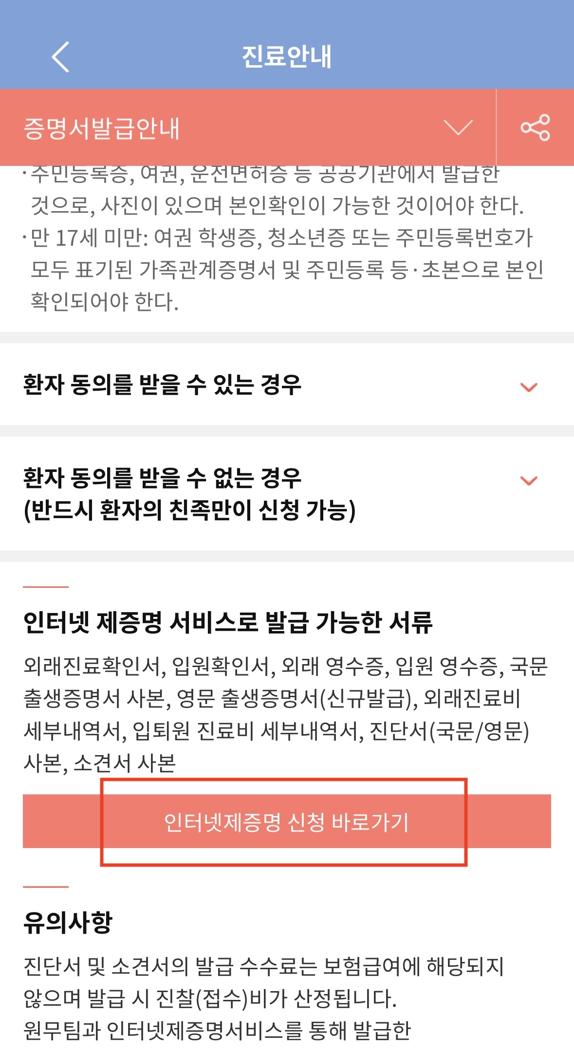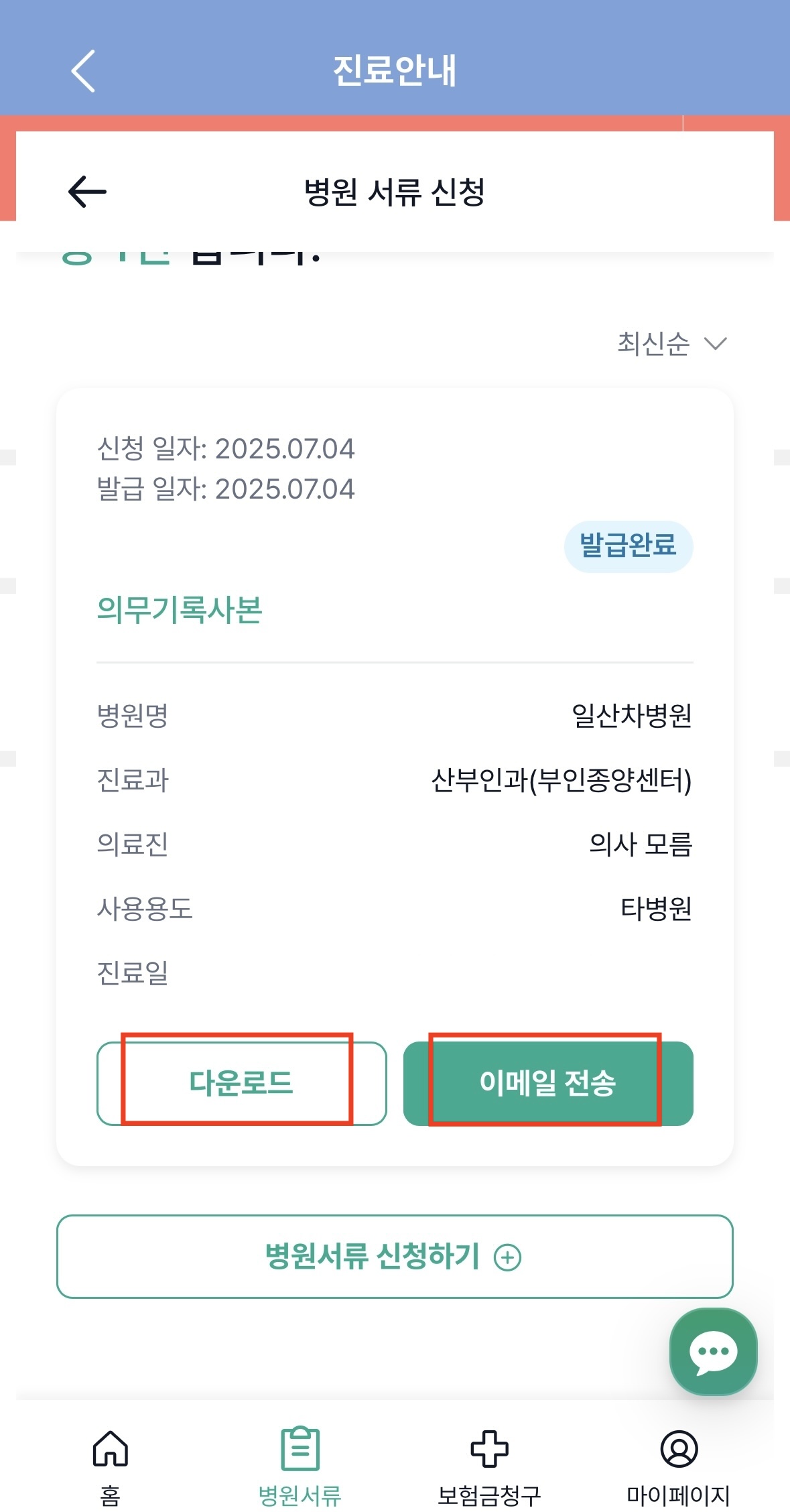 병원마다 신청 방법 및 가능 서류 범위가 다르므로, 사전에 홈페이지를 통해 확인하시는 것이 좋습니다.