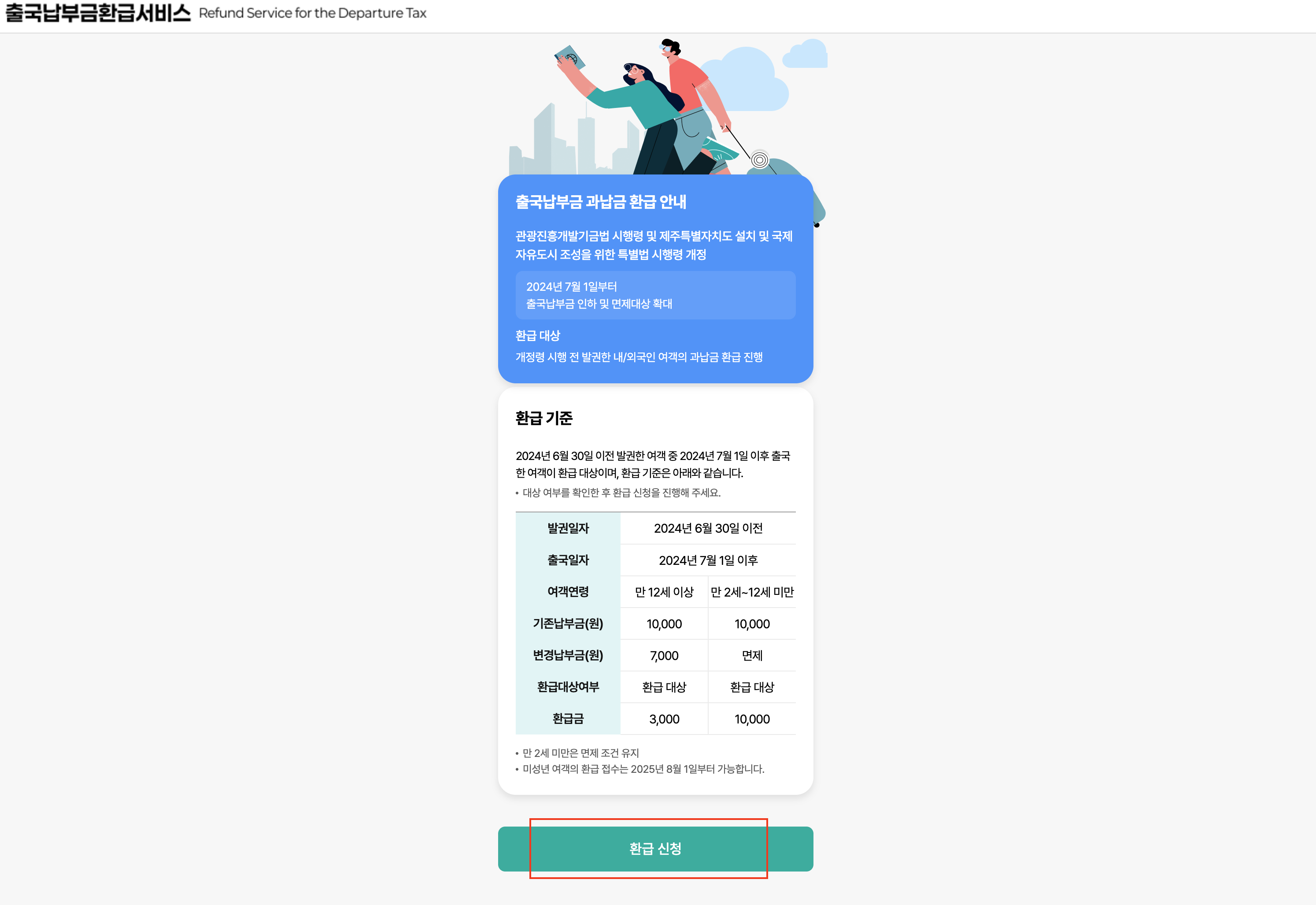 2024년 7월 1일 이후부터는 일부 승객을 대상으로 출국납부금 환급이 가능해졌습니다. 아래 표를 통해 자세히 확인해보세요.