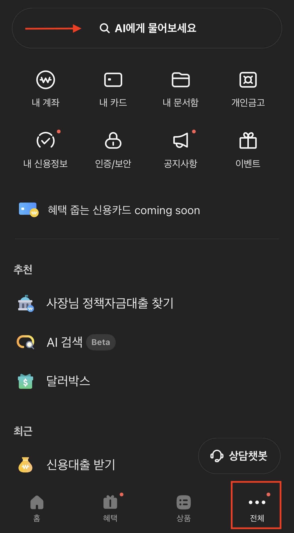 만약 원하는 메뉴가 바로 보이지 않는다면, 화면 상단 또는 앱 내 ‘검색’ 기능을 이용하시면 빠르게 찾을 수 있습니다.